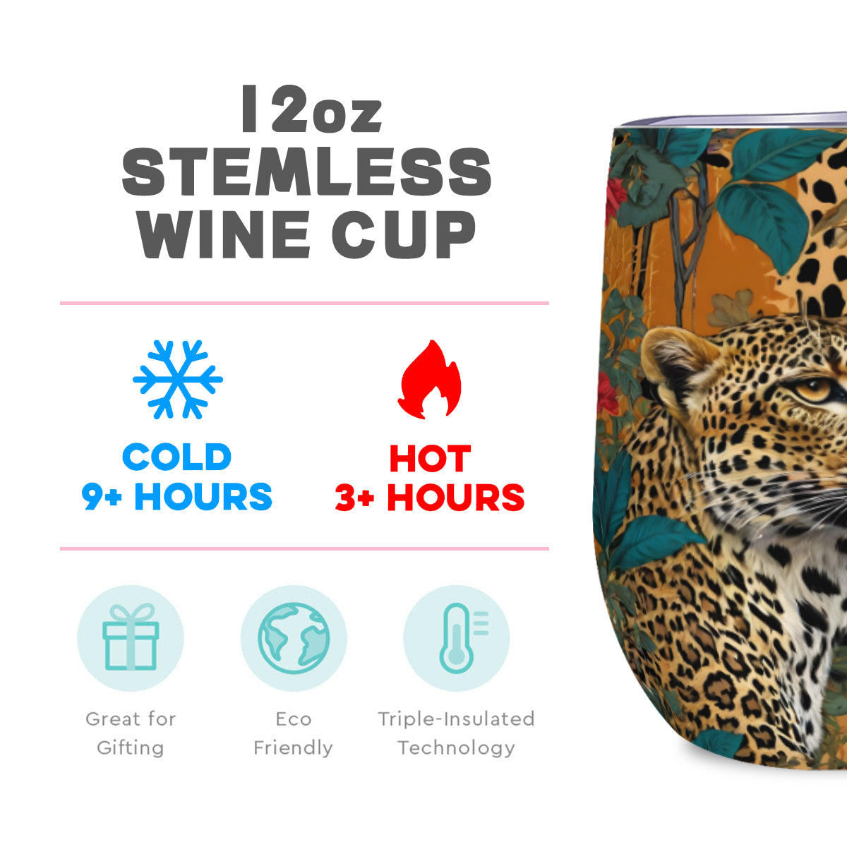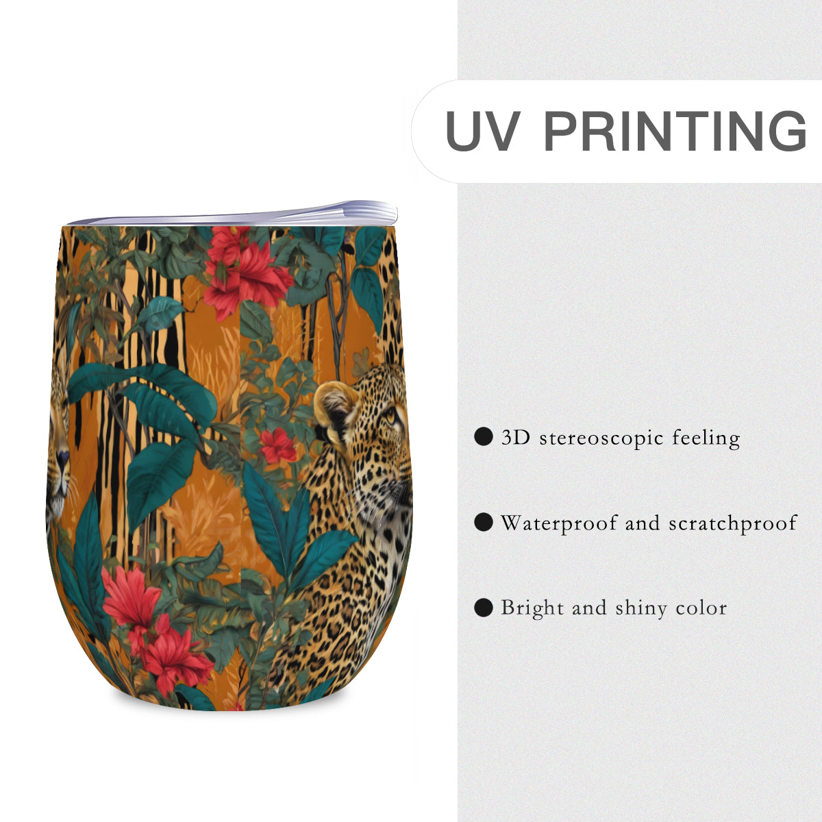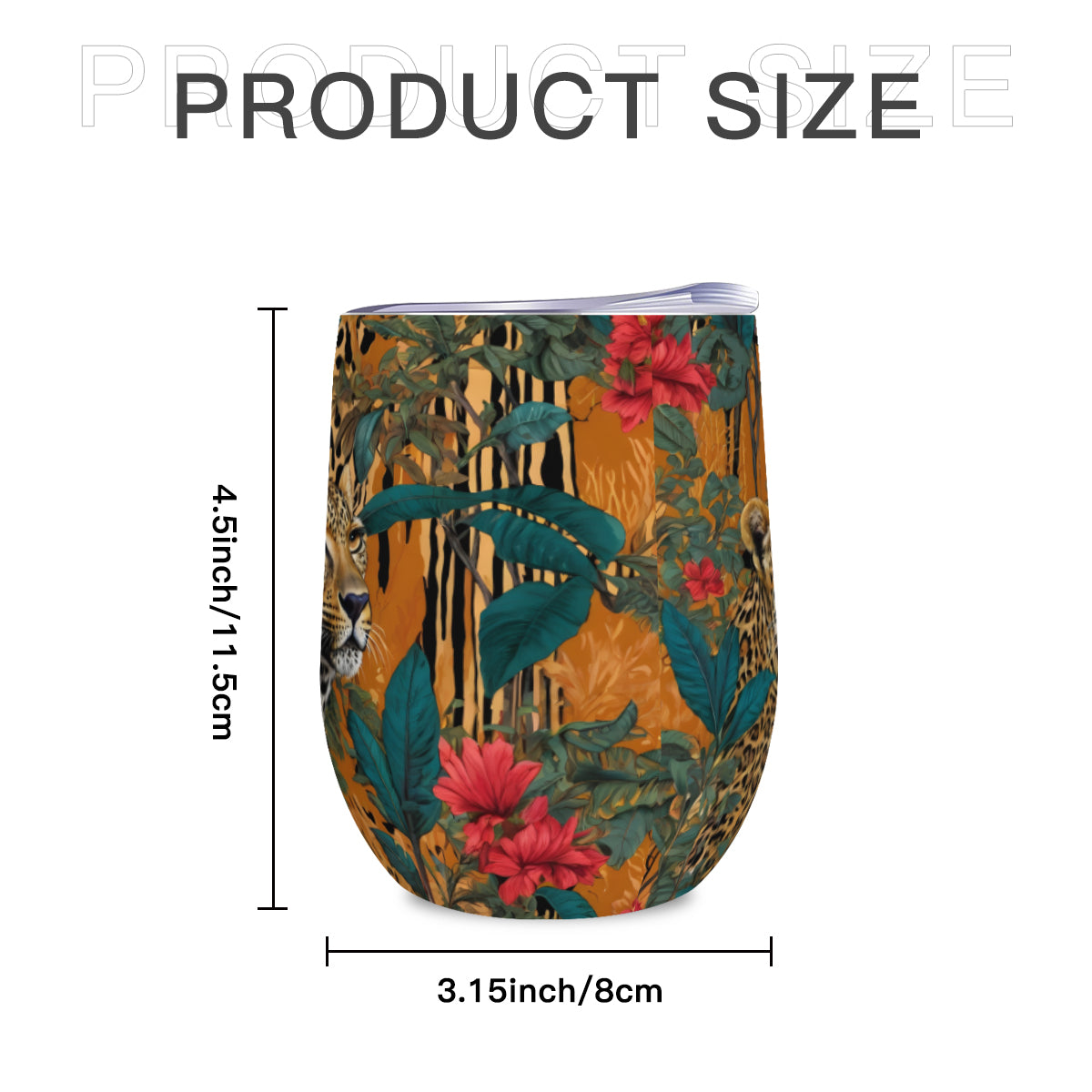 Design area: All-Over Print Warrior Leopard Stemless Wine Tumbler(350ml/12oz)| Stainless steel 304
