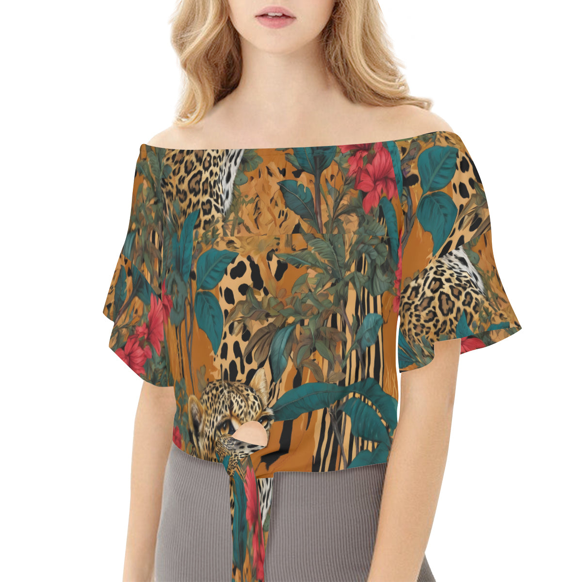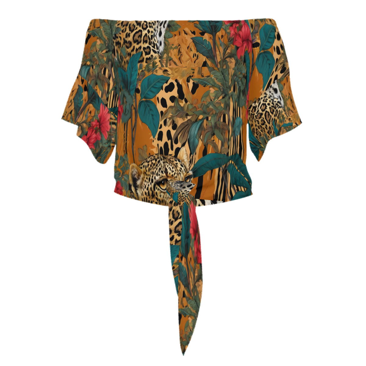 Design area: All-Over Print Warrior Leopard Women's One-shoulder Tie Short Sleeves T-shirt | Polyester